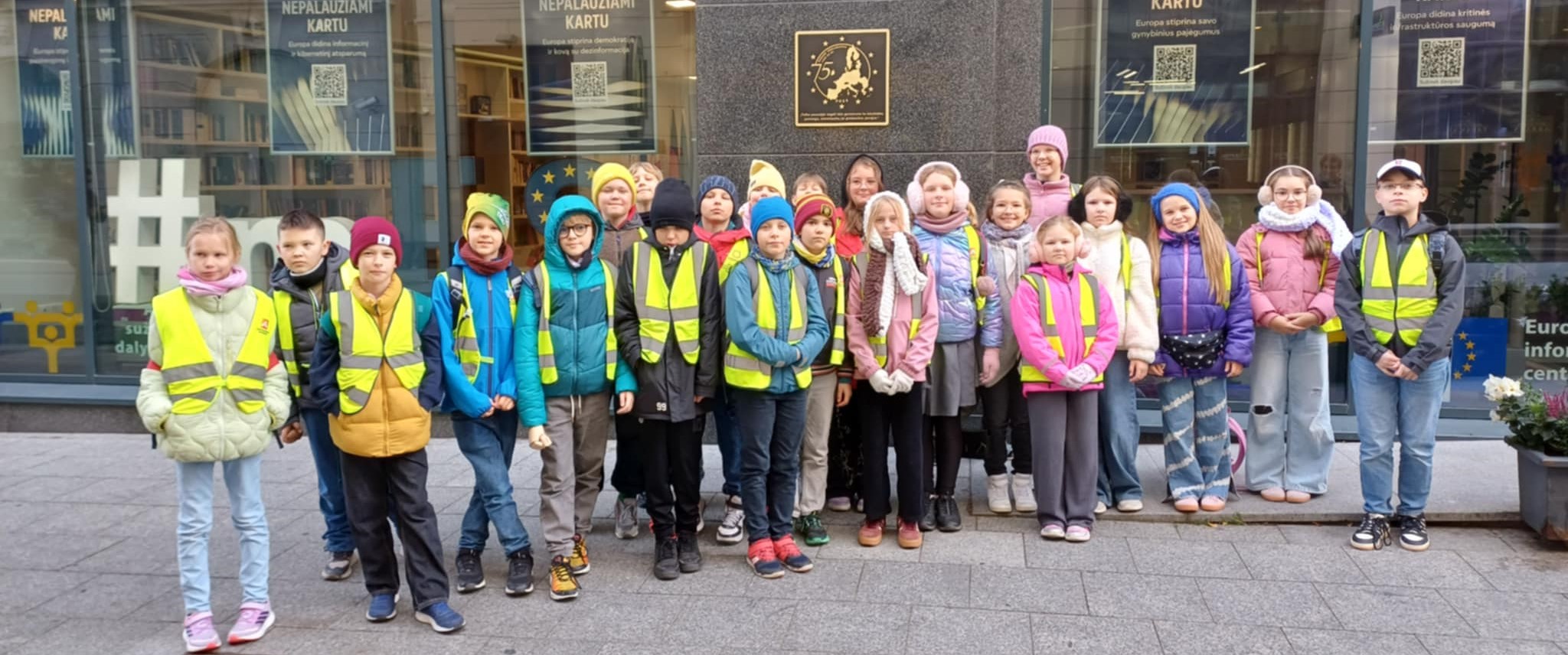 Spalio 1d. 4b klasės mokiniai dalyvavo projekto "Vilnius yra mokykla" edukacinėje veikloje "Kodėl verta mokytis užsienio kalbų". Taip paminėjome rugsėjo 26d. vykusią Europos kalbų dieną. Pamoka vyko Europos komisijos atstovybės Lietuvoje patalpose. Įdomu buvo sužinoti, kad ilgiausias lietuvių kalbos žodis sudarytas iš 43 raidžių-"nebeprisivaizdotinklaraštininkaujantiesiems"!