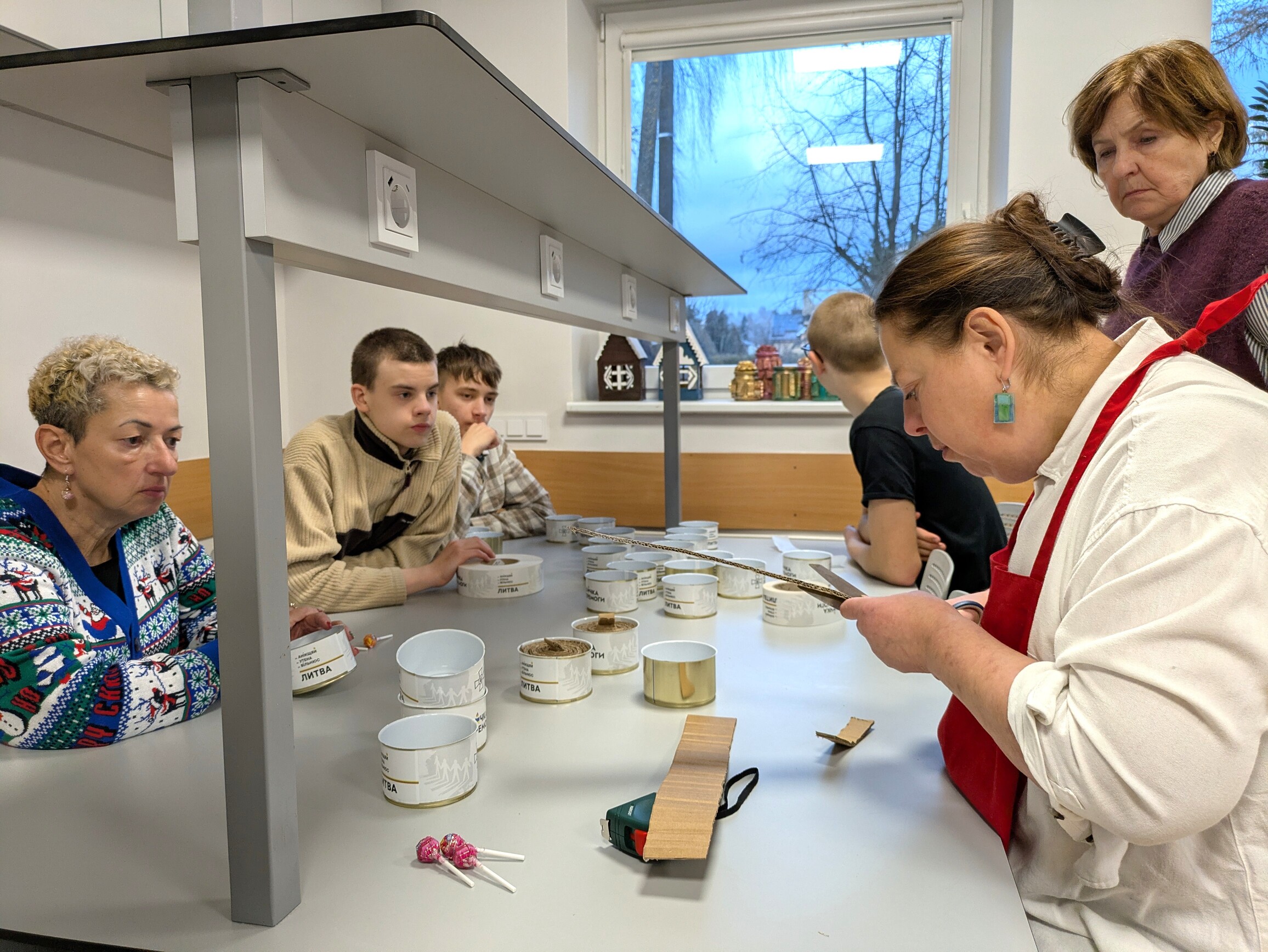 Mokyklos bendruomenė aktyviai prisijungė rinkdama žvakių vašką, parafiną, šiltas kojines ir kavą.