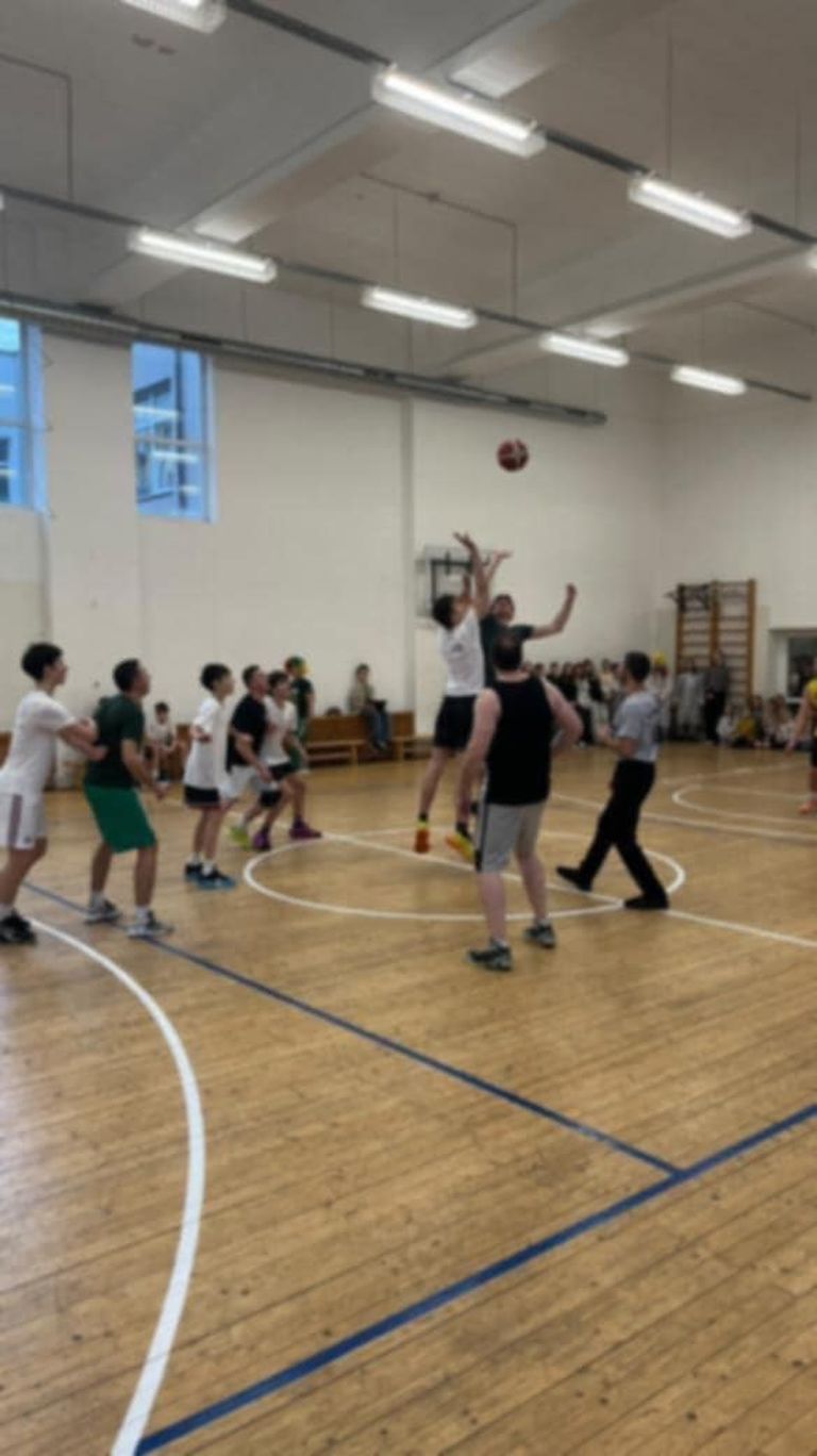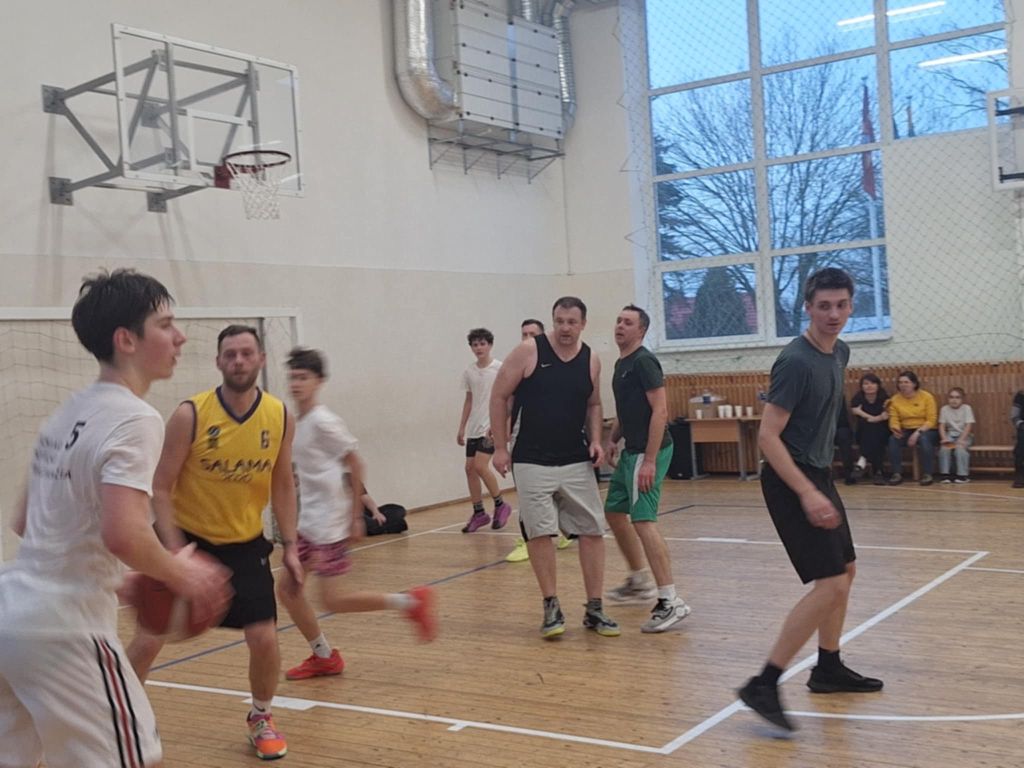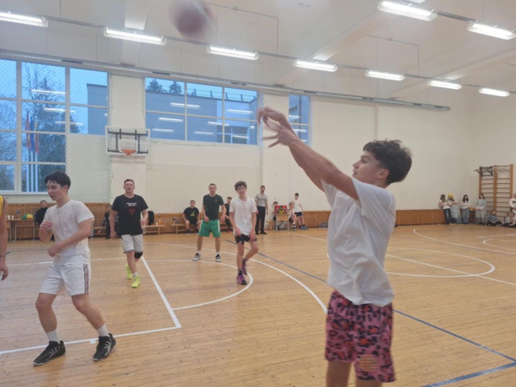 Krepšinio aikštelėje susitiko tėvų-mokytojų ir jungtinė mokinių komandos. Jos abi pasižymėjo meistriškumu bei energija. Sporto salėje virė tokia intriga, kad net profesionalai būtų pavydėję! Po taiklių metimų krušos, rezultatu 104 : 94, šį kartą pergalę šventė vyresniųjų komanda.