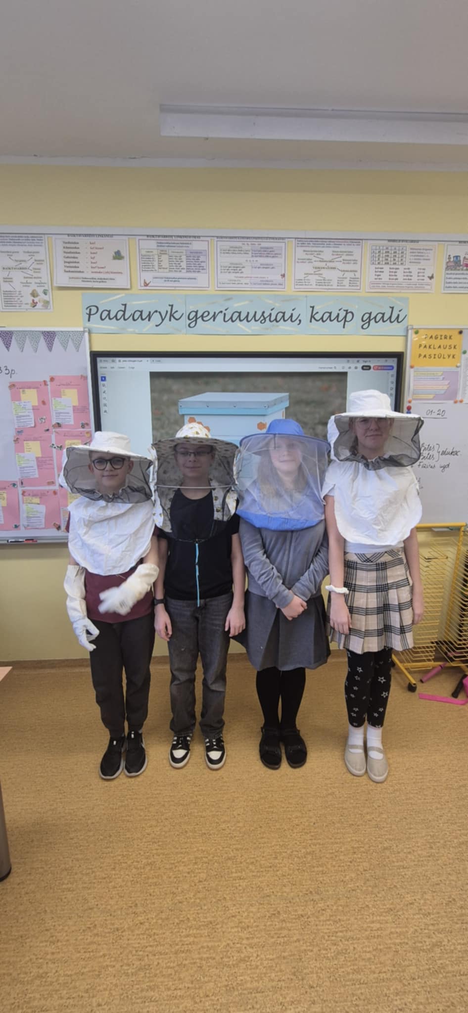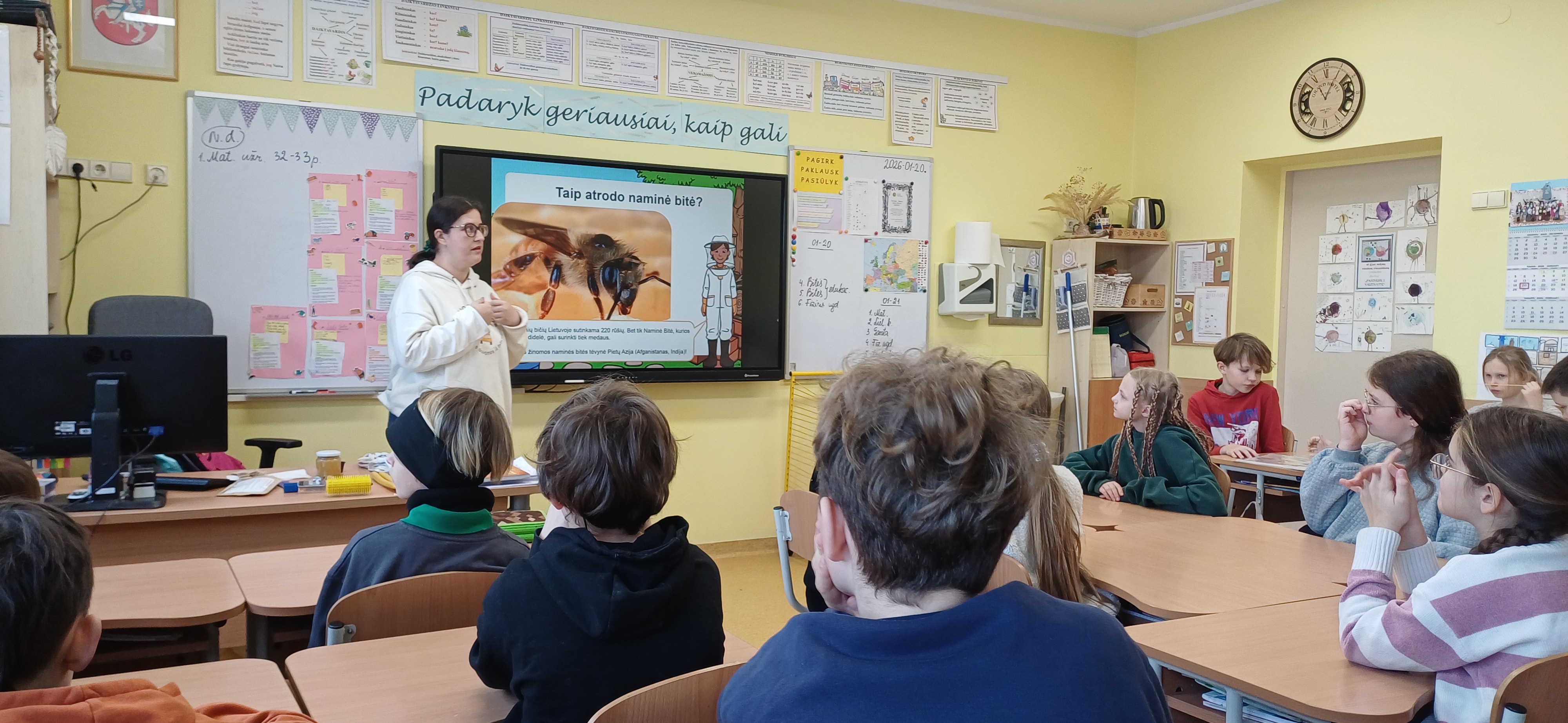 Mokiniai susipažino su bitininkų darbu, bičių gyvenimu bei avilio sandara. Ketvirtokai uždavė klausimus, degustavo bičių produktus (medų, bičių duoną, gėlių žiedadulkes). Susipažino su bičių vašku ir natūraliomis žvakėmis. Pamatė su kokiais įrankiais dirba bitininkai (dūminė šluotelė, bitininko kaltas, korio atakiavimo šukos). Pasimatavo bitininkų kostiumus, kepures ir pirštines.