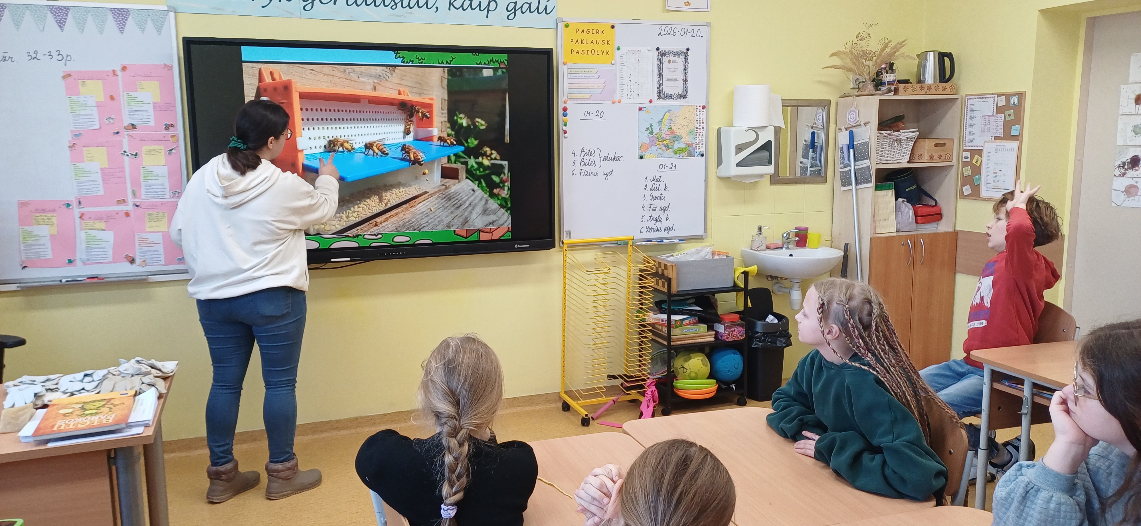 Sausio 20 d. 4 b klasėje vyko edukacinė veikla "Bičių gyvenimas". Ši edukacinė veikla yra iš Pavilnio progimnazijos vykdomo projekto "Bitės-mažieji mūsų draugai".