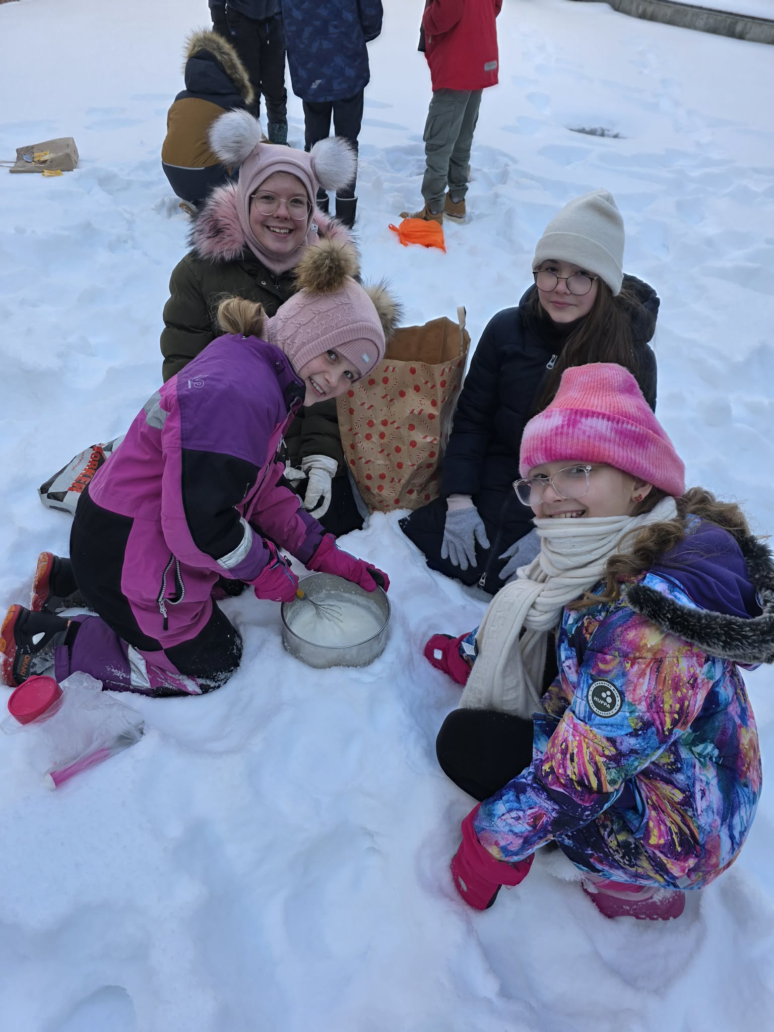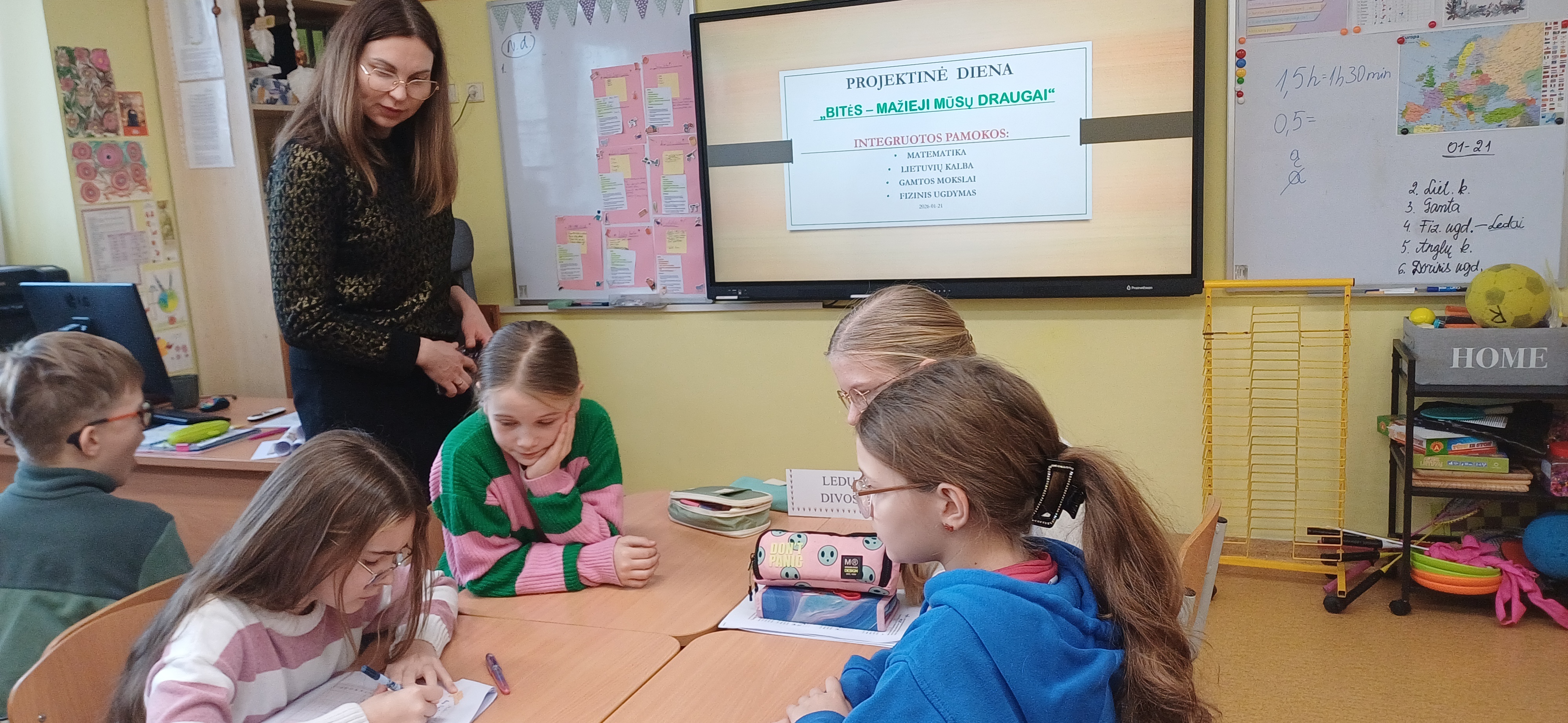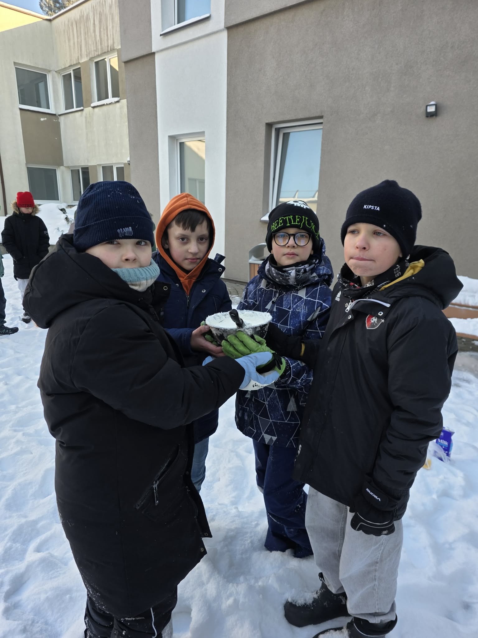 Sausio 21 d. 4b klasėje vyko projektinė diena "Bitės-mažieji mūsų draugai". Integruotas veiklas vedė mokytoja Ramunė ir praktikantė Akvilė. Vyko integruotos lietuvių kalbos, matematikos, gamtos mokslų pamokos. Mokiniai grupėse puikiai atliko žaismingas užduotis. O fizinio ugdymo pamokoje ketvirtokai gamino ledus sniege!!! Reikėjo kantrybės, bet visoms 7 grupėms pavyko!!! O jau skanumėlis!!! Norite išbandyti ir Jūs? Klauskite ketvirtokų-jie žino skaniausų ledų sniege receptą!
